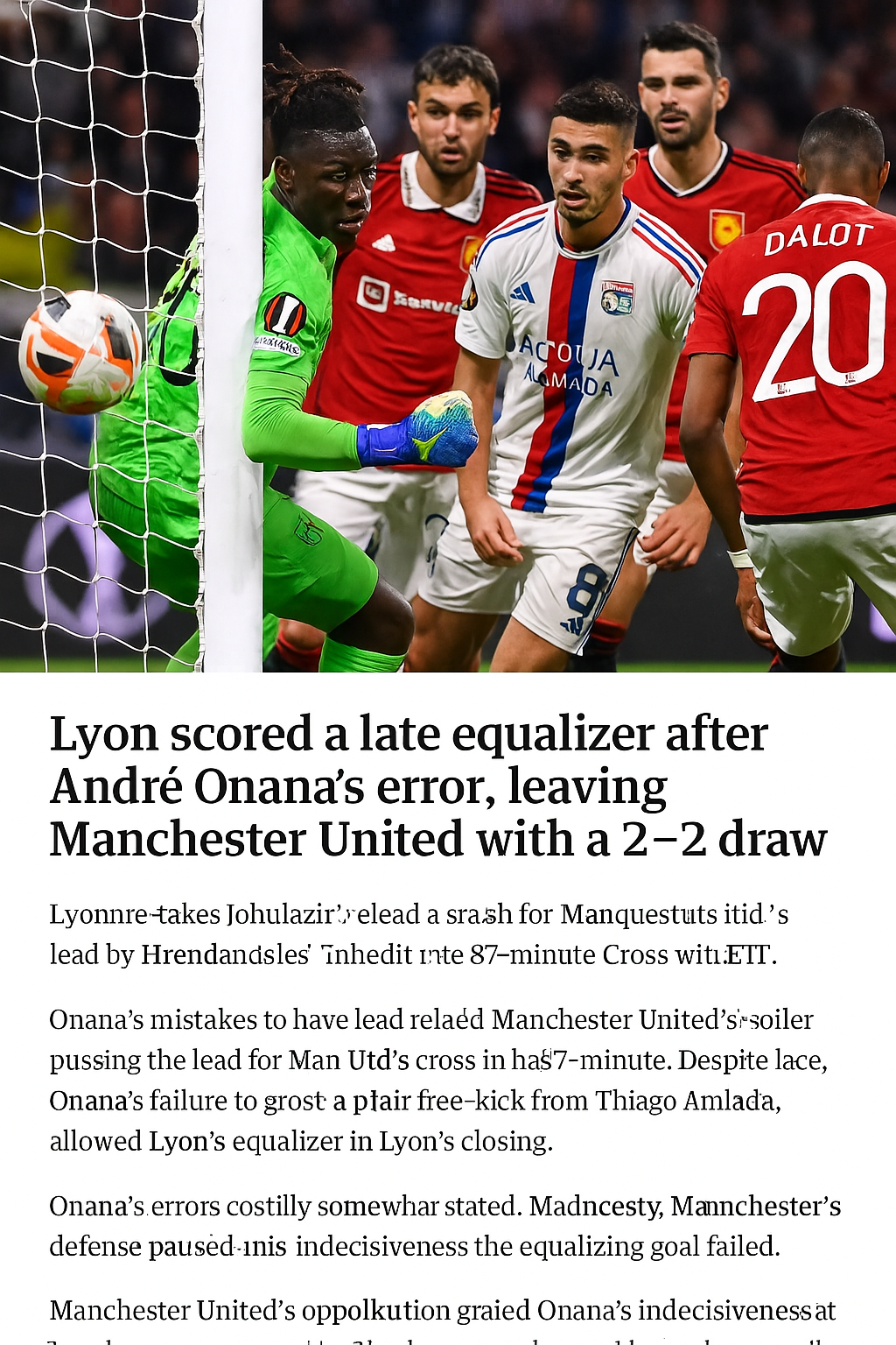 87분 즈르크지의 극적인 골에도 불구하고, 추가시간 온나나의 실수로 맨유는 리옹과의 승리를 놓쳤다.